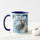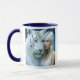Hübsche blonde Frau mit einem mystischen weißen Tiger. Ai ethereal Fantasy Art.