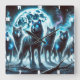 Mystische Wölfe in Moonlit Forest Blue Glow Quadratische Wanduhr