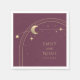 Mystical Plum Gold Sun Star Moon Astronomie Space Wedding Napkins bietet Sonne, Mond und Sterne mit einem goldenen Rahmen auf einem Pflaumenuntergrund. Personalisieren Sie mit Ihren Namen und Datum oder benutzerdefinierten Text in der Mitte. Entworfen für Sie durch © Evco Studio. Teil einer Sammlung unter www.zazzle.com/store/evcostudio