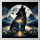 Mystischer Wolf Howling auf dem Moon Surreal Perso Poster