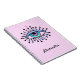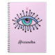 Ein mystisches All-Seeing-Auge in Aquamarin rosa Lavendelblau auf einem hellrosa Notizbuch. Brennen mit Wimpern, die wie Lichtstrahlen aussehen! Personalisiere es!