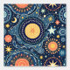 Mit diesem zauberhaften Himmelsmuster, das sich aus feinen Sonnen, Monden und Sternen auf einem tiefen Marinehintergrund zusammensetzt, verwandeln Sie Ihren Raum. Dieses magische Design ist perfekt für die böhmische und mystische Wohngestaltung geeignet und vereint skurrile Himmelselemente mit volkstümlichen Einflüssen. Die warmen Korallen, goldgelben und minzigen Akzente schaffen eine traumhafte kosmische Atmosphäre, ideal für Bettwäsche, Tapisserien oder spirituelle Räume. Jedes Element ist sorgfältig detailliert mit Spiralen, Punkten und fließenden Linien, die das Geheimnis des Nachthimmels erfassen.