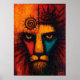 Mystisches Löwengesicht in Farbflächen expressioni Poster