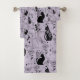 Mit diesen mystischen, schwarzen Katzen- und Schmetterlingshandtüchern verleihen Sie Ihrem Bad einen witzigen Charme. Das elegante Lavendel-Design mit sternförmigen Details und floralen Akzenten machen diese Handtücher sowohl praktisch als auch dekorativ. Eine perfekte saisonale oder ganzjährige Ergänzung für gotisch inspiriert Zuhause.