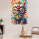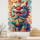 This poster is a vibrant and colorful illustration of a mythical creature, likely a Okinawan Guardian Lion (often called Shisa) or a representation of a Lion Dance mask/costume.