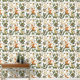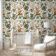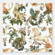 Eine Menagerie fantastischer Kreaturen - Drachen, eineiskornähnliche Pferde, gezackte Hirschschlangen und skurrile Fuchs-artige Tiere mit üppig wirbelnden Blättern und blühenden Blume.
