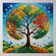 Dieses großartige Gemälde von Gond zeigt einen mythischen Baum, der durch die Jahreszeiten wächst, seine Äste beherbergen eine Vielzahl von Vögeln und Tieren. Das Kunstwerk mit seinen komplexen, lebendigen Designs, die die Veränderungen in der Natur darstellen, erfasst wunderbar die Harmonie des Lebens und die Zyklen der Zeit und macht es zu einer atemberaubenden Darstellung der Verbundenheit aller Lebewesen.