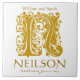 N Gold Monogram on White - Names Wedding Date Tile