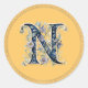 N Monogramm blaugoldene Blume Runder Aufkleber