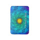 Ein mehrfarbiges (blau, gelb, grün) Fraktal, das Motten oder Schmetterlinge ähnelt, die von einem zentralen Punkt aus entstehen. Fügen Sie Ihren eigenen Text hinzu.