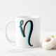 Kalligraphie des Buchstaben N auf einer grundlegenden Tasse mit blauen Akzenten