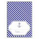 Naby blaue, weiße Streifen und nautische gefaltete Eskortenkarte mit Anker, die ein gestreiftes Muster mit marineblau, weißen diagonalen Streifen aufweist, einen Anker mit blauem Liebe und Seil und grauweißem und weißem Text in einem Rahmen. Zeitgenössisch und dennoch mit einem Vintagen Blick in gewisser Weise. Sie können Hintergrund und Textfarbe aus dem Zazzle Farbdiagramm ändern. Dieses elegante Design ist ein vollständig anpassbares Template und ist Teil eines Hochzeitszimmers, das für eine Hochzeitsfeier im Sommer oder eine Hochzeitsfeier am Strand geeignet ist. Falten Sie es entlang der gepunkteten Linie, um eine gefaltete Platzkarte im Zeltstil zu haben.