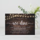 Markieren Sie den Anfang Ihres Lebens mit rustikaler Eleganz mit unserer Hütte- und Dorfsaitenbeleuchtung dunkelbraunen Hintergrund themed, Hochzeitsfeier Einladungskarte, "After we do we dine". Diese Einladung eignet sich perfekt für Paare, die ihren fröhlichen Anlass ausdehnen und mit einem Hauch von Verspieltheit die Bühne für eine unvergessliche Veranstaltung geben. Das zeitlose Design des Drehbuchs verleiht Ihren Festlichkeiten eine Touch raffinierten Charmes. Diese von TeeshaDerrick entworfene Einladung verspricht, Ihre Liebe schön zu erfassen.