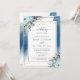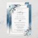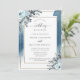Elegant nach der Hochzeitseinladung mit blauem, wasserfarbenem Fleck, exquisiten Eckbouquets und goldenen Rahmen, die Ihre Hochzeitsdetails umrahmen. Handgemalte Aquarelltöne und Blattwerk in staubigen Blau-, Marine-, Weiß-, Salbei-, Grau- und Karamelltönen. Rückseite der Karte mit dem gleichen zarten, fließenden blauen Aquarellfärbung. Teil unserer Hochzeitskollektion "Rustic Blue Mountains".