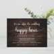 Schöne nach der Hochzeit Happy Hour Party, Einladung, Hochzeitsfeier Ankündigung / Einladung Karte, in rustikalen dunklen Holz Hintergrund themed, einfach, minimalistisch Design. Dies ist ideal für Ihren Hochzeitsempfang und Ihr Party nach der Hochzeit. Fügen Sie Ihre Daten in passender Schriftart / Schrift hinzu.