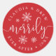 Personalisieren Sie diese festlichen roten Weihnachtsaufkleber mit Ihren Namen und das Jahr für eine schicke Art, Ihre Weihnachtskarten oder Weihnachts-Hochzeitseinladungen und Korrespondenz zu beenden. Dieses schicke Design ist perfekt für Neuvermählte und bietet eine Mischung aus weißen Kalligrafien und Blockschriften, die mit weißen Schneeflocken betont werden.