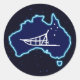 Eine schlichte weiße Silhouette eines Hundeschlittens und das Südkreuz überlagerten sich auf einer blauen Karte Australiens. Alles auf einem Hintergrund mit Sternen. Wer hätte es denn gehabt? Auf den Kopf in Oz. Hundeschlitten ist in Australien sehr beliebt. Auf dem Hotham in Victoria gibt es jedes Jahr ein großes Rennen.