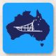 Eine schlichte weiße Silhouette eines Hundeschlittens und das Südkreuz überlagerten sich auf einer blauen Karte Australiens. Sie können eine andere Hintergrundfarbe wählen. Wer hätte es denn gehabt? Auf den Kopf in Oz. Hundeschlitten ist in Australien sehr beliebt. Auf dem Hotham in Victoria gibt es jedes Jahr ein großes Rennen.