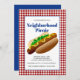 In diesem Sommer Nachbarschaft Picknick-Einladung bietet eine große Grafik eines Hot Dog und ist mit einem rot kontrollierten Rand betont. Benutzerdefinierter Text erlaubt es Ihnen, Ihre Party-Details hinzuzufügen.
