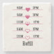 Ein Nachfülldiagramm: eine spielerische Möglichkeit, zu verfolgen, wann es Zeit ist, Kaffee, Wasser, Essen oder alles, was man sich wünscht, aufzufüllen. Von 8 Uhr bis 18 Uhr sind die Herzen anfangs vollständig schattiert und verblassen allmählich, um anzuzeigen, dass es Zeit für eine Nachfüllung ist.