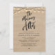 Planen Sie ein glückliches Leben nach der Brunch-Feier, nach Ihrem Hochzeitstag? Laden Sie Ihre geliebten Gäste mit diesem Thema "am Nachmittag" in modernem rustikalem Schriftzeichen-Design (Hütte braunes Holz, Hintergrund der Saitenlichter) ein, das Datum, Uhrzeit, Veranstaltungsort und UAWG Details angibt.