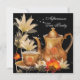 Nachmittags Tee Party Vintag Hübsch schwarz goldfarben orange Blumenkohl Teekanne. Tee am Morgen retro alte Welt. Jeden Anlaß Einladungen. Party Geburtstag lädt Vorlage für Brautparty ein