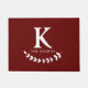 Burgundy Red Monogram Initial Letter and Family Last Name Doormat mit niedlichem, abgerundeten Blattzweig, der den Text umrahmt. Dieses Design ist perfekt für Neuvermählte und Familien. Das ist ein großartiges Geschenk für Hauswärmung und Hochzeiten. Personalisieren Sie das Design mit dem Anfangsbuchstaben und Familiennamen Ihres Nachnamens. Der Text und der Zweig sind beide farblich editierbar, wie auch der Hintergrund, sodass dieses Geschenk können Sie überall anpassen.