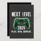 nächstes Level 2025, Gaming-Liebhaber, Gamer-Spaß, Level up, Play win Wiederholung, Videospiel-Enthusiast, lustiges Gaming-Zitat, neue Jahre Gamer, Gaming Lifestyle, Gaming-Feier, Konsolen-Gamer, Gaming-Pad Design.