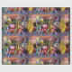 Elegantes, skurriles, künstlerisches Gemälde mit zauberhafter, farbenfroher Musik, Mond, Feen, Pferden in lebhaften, aquamarin-blauen, roten, gelben, weißen Farbtönen .Akrylmalerei auf Leinwand, Mischmedienmalerei mit goldener und silberner Folie .