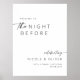 Modernes Begrüßungszeichen für Probe. Personalisiert Simple Minimalistisch Willkommen in der Nacht vor dem Sign. Klicken Sie einfach auf den Link, um den Text anzupassen, der unter dem Bereich für die Textpersonalisierung rechts angezeigt wird, und wählen Sie Ihren eigenen Farbhintergrund aus. Dieses Schild Poster-Template macht es einfach und schnell, atemberaubende Ergänzungen Ihrer Hochzeitsdekoration zu schaffen. Die Zeichen können vergrößert werden, es gibt viele Größen zur Auswahl, sowie Optionen für die individuelle Gestaltung und Anpassung.