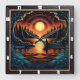 Diese Abbildung zeigt einen einsamen Fischer auf einem See, umgeben von einem eindrucksvollen Sturm glühender Blitze. Die Szene wird in einer dunklen, mystischen Palette von Blues, Teals und feurigen Orangen dargestellt. Die kühne, stilisierte Linie verleiht dem Kunstwerk ein kraftvolles und dynamisches Gefühl.