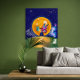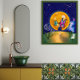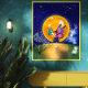 Ein skurriles Abenteuer entfaltet sich, als ein vom Schmetterling geflügtes Mädchen auf den hellen Mond blickt, umgeben von kosmischen Wunder.