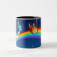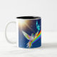 Nachthimmel, zwei Vögel, Schmetterlinge und ein Re Zweifarbige Tasse