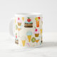 Köstliche Pixelkunst: Eiscreme, сake, Cappuccino, Saft, Cocktail, kleiner Kuchen.