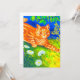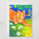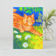 Karte mit Louis Wains Tiermalerei Cat Stalking (1860-1939). Eine orange gestreifte Katze geht nachts auf einem grünen Feld spazieren. Weiße, lila und rote Blume stehen im Vordergrund. Ein wunderbares Geschenk für Katzenliebhaber und englische Kunst.