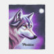 Dies ist eine schöne Fleecedecke für einen WolfLiebhaber, die eine Darstellung eines mystischen Wolfsegesichts in Weiß- und lila-blauen Farbtönen zeigt. Der Name auf der Decke ist mit dem Namen des Empfängers anpassbar.