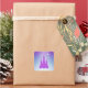 Eine magische, lila, leuchtende Burg mit Türmen und Fahnen, die in den weichen silbernen Wolken unter einem Sternenhimmel und Halbmond hochfliegen. Ein originelles digitales Kunstdesign.