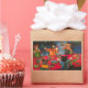 Freunde und Familie versammeln sich für ein köstliches spätes Abendessen im Garten unter der Weinrebe. Original Malerei/Design von Akrylkatzen.