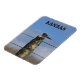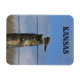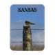 Ein Bild eines Kansas-Nachtschwärmerschlafens auf einem Kalksteinpfahl mit blauem Himmel, Wolken, Barkdraht und Gras, westlich des Wilson-Sees südlich von Lucas Kansas. Das ist auf einem Square MAGNET.