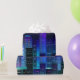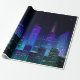 Nachtstadtpanorama mit Neonglühen auf dunklem Hint Geschenkpapier