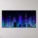 Nachtstadtpanorama mit Neonglühen auf dunklem Hint Poster