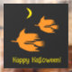 Vergnügen, einfach, halloween Bild einer orangen Silhouette von Hexen, die Besen unter einem gelben Mond reiten. Sie können die Größe und Position des Bildes ändern und den Text 'Happy Halloween!' ändern. Dieses Design passt zu den Halloween-Kollektionen von 'Hello Hexe'.