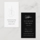 Elegante, vertikale Visitenkarten für nahtlose, modische Designer, Stylist, Schneider und vieles mehr verfügen über eine Nähnadel und einen schicken, blassgrauen Faden mit zwei Textzeilen, darunter in knusprigem Schwarz. Passen Sie die Rückseite mit den vollständigen Kontaktdaten in weißer Schrift auf schwarzem Hintergrund unter einer passenden Nadel-Abbildung an.