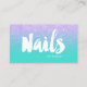 Eine moderne, Nageltechnikerkünstler-Stylist-Geschäftskarte mit moderner Handbeschriftungsart-Bürstentypographie im Weiß auf einem Glitter- und Türkismeerjungfrauhintergrund des eleganten Imitatlavendels lila.