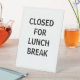 "Geschlossen für Mittagspause" Schild, entwickelt für Verkaufsstellen, Kassentheken, Handwerkskabinen, Pop-Up-Stores etc.