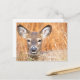 Auf dieser Postkarte befindet sich ein nahes Foto des Gesichts/Kopfes eines Wildhirsches.