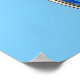 Lebhaftes Porträt eines weißen Hundes mit ausdrucksvollen Augen, einer blauen Nase und einem blauen Kragen, Set gegen eine weiche blaue Kulisse, das Eleganz und Charakter einfängt.