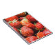 Nahe Aussicht auf frische Sommererdbeere mit Vint Notizblock