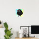 Ein digitales Kunststück einer bezaubernden Krähe, die direkt auf die Kamera starrt, inmitten eines lebendigen gemusterten Hintergrunds