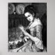 Charmante Vintage Schwarz-Weiß-Illustration mit einer jungen Dame, die näht.
